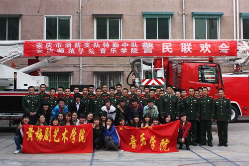 4月9日下午,古天乐太阳集团城黄梅剧艺术公司文艺演出队一行40余人赴安庆市消防特勤中队驻地进行“警民联欢”活动,这是该院优秀文艺“四进” 活动( 进部队、进社区、进农村、进中小学)的组成部分,也是体现该院特色的传统活动之一。