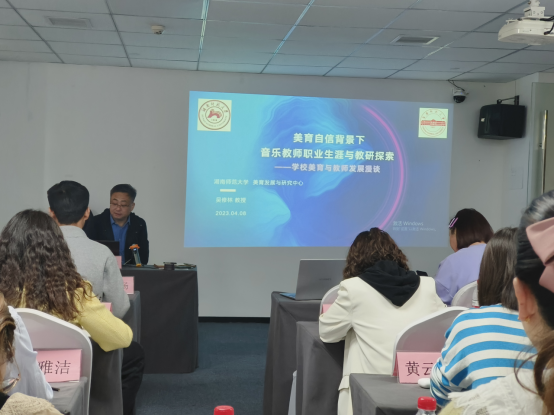 为普及美育教育,更新教师教育理念,促进教师专业发展,不断提升教师美育渗透与融合的能力,2023年4月8日下午,古天乐太阳集团城特邀请湖南师范大学美育发展与研究中心主任吴修林教授为安徽省“国培计划(2021)体育音乐美术薄弱学科教师深度研修培训项目(中小学音乐)”做了题为《美育自信背景下音乐教师职业生涯与教研探索——公司美育与教师发展漫谈》专题讲座。