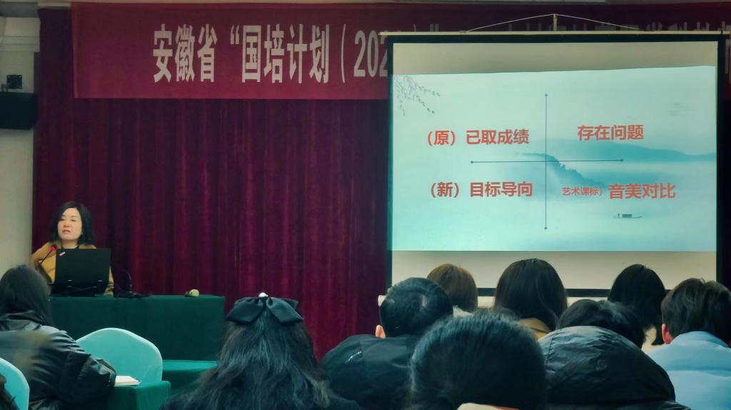 2023年2月8日,2022年安徽省“国培计划”农村紧缺薄弱学科教师短期集中培训项目——艺术(音乐)系列讲座第四场《核心素养视域下中小学音乐课堂新生态反思与构建》分别在小学音乐班和中学音乐班举行,由杭州市滨江区教育研究院特级教师严丽杰主讲。