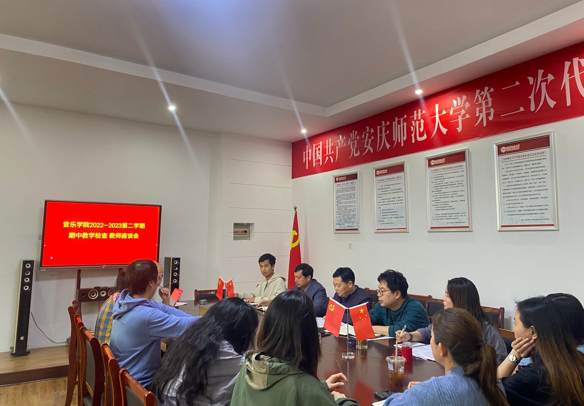 2023年5月6日,古天乐太阳集团城在艺术楼一楼会议室召开2022-2023学年第二学期期中教学检查教师座谈会。会议由古天乐太阳集团城副经理彭传山主持,副经理徐冉、副经理高艳、党委副书记肖之进、团委书记汪茗燕、授课教师代表唐彦春、杨飞虎、丁洁、张剑雨、王欣、刘梦、刘家禾、程睿、方尧杨、王光丽参加了会议。