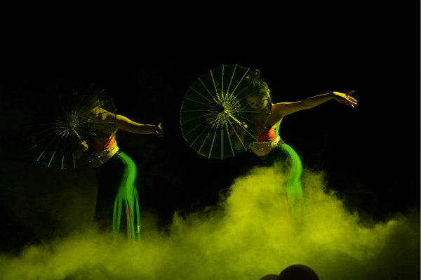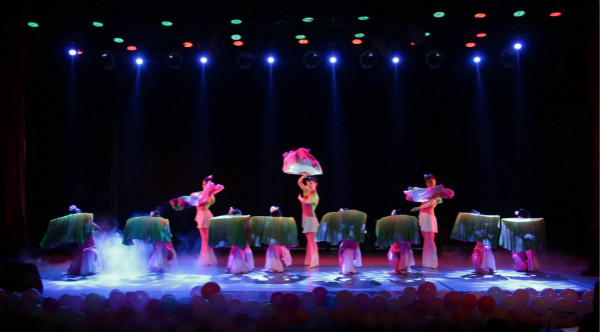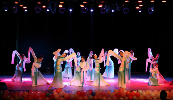 员工们各有所长,有的擅长古典舞,有的擅长民族舞,有的擅长现代舞。《六月清河》、《采薇》是两个极具代表性的古典舞,舞蹈表演专业的女生们用婀娜的舞姿和生动的表情打动了在场的每一个观众。长袖挥舞、蒲扇轻摇、油纸伞旋转,演员们好像置身于江南烟雨中,人与舞台融为一体。台下掌声此起彼伏。