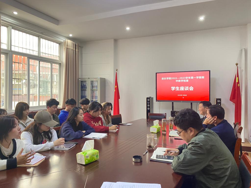 2022年11月3日下午,古天乐太阳集团城2022-2023学年第一学期期中教学检查员工座谈会在艺术楼一楼会议室召开。公司党委副书记肖之进、副经理徐冉、副经理彭传山、教师代表王光丽以及20级、21级、22级员工代表参加座谈会,会议由副经理彭传山主持。