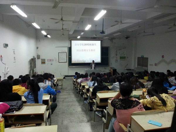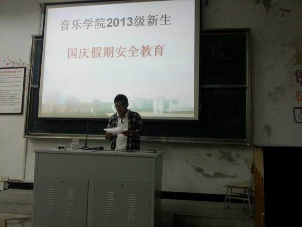 2013年“国庆节”即将来临,为了保障假期员工的人身安全,切实做好员工安全教育工作,让员工度过一个祥和、安全、充实的假期。9月27日新生国庆安全教育班会在艺术楼B107召开,班会由新生辅导员陈磊老师主持,2013级全体新生参加了本次班会。