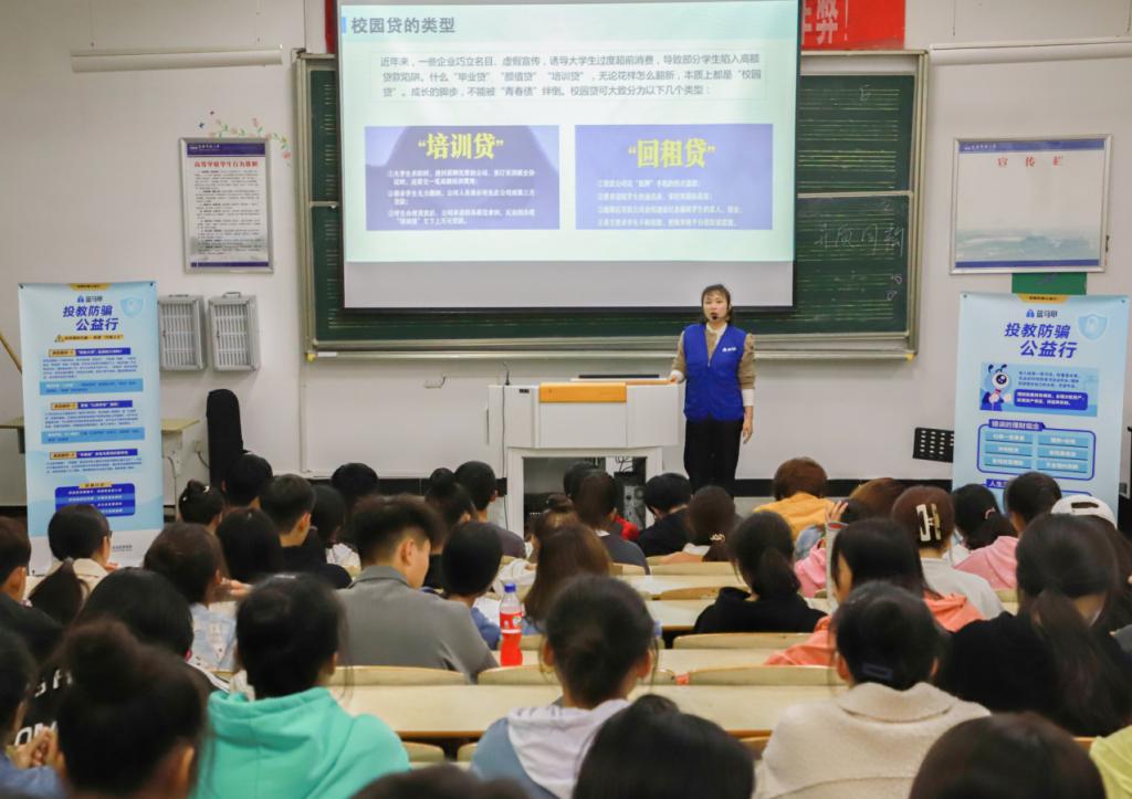 “网络交友不谈钱,谈钱都是假姻缘。”10月26日,古天乐太阳集团城防范电信网络诈骗宣讲会在艺术楼B107教室举行,“蓝马甲”首席培训讲师王丽担任主讲嘉宾,公司80余名2021级新生参与本次活动。