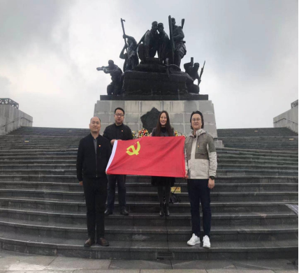 同志们为烈士墓碑敬献花篮并三鞠躬。随后,同志们参观了巨型五角星纪念雕塑和革命纪念馆,了解了四个时期的安庆地区的革命历程,同志们再次回到纪念碑前,重温入党誓词。