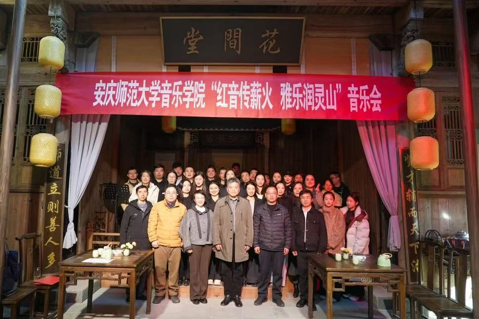 下午,全体教师赴徽州区大灵山旅游度假区,在古韵悠然的老宅茶馆举行“红音传薪火,雅乐润灵山”校企合作座谈会暨主题音乐会。浪漫红文旅集团负责人与公司教师围坐共话合作、共奏华章,围绕“文旅+音乐舞蹈”深度融合展开热烈交流,在人才输送、实习基地建设、统战工作创新、特色文旅项目开发等方面凝聚共识。党员和民主党派教师用精心准备的曲目温情上演一场主题音乐会,共同演绎《日落西山》等张曙经典作品,并融入原创红色艺术歌曲,实现百年古建与经典雅乐交相辉映,红色精神与文旅魅力深度融合,为现场嘉宾与游客带来了一场浸润心灵的视听盛宴。