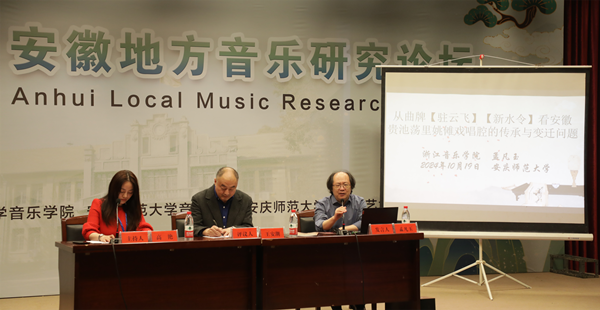 王安潮教授指出,这三份报告都体现了三位学者扎实的理论功底。陈瑜副教授提出民间音乐的作曲分析理论,这是一个全新的理论概念,将民间的唱腔化为创作技法,深有启发。朱教授所谈的地方性知识与民间音乐公司的传承问题,也深有体会。所提及的文化性、综合性、实践性的观点,将母语与口传心授都纳入到以西方科学性同等话语体系中,这是非常有意义的。田教授长于安徽、客居武汉,对区域音乐史有着非常深入的研究。田教授的呼吁非常好,希望安徽的青年学者们能够参与到安徽音乐的研究中来,这对于区域文化、地方文化的发展有着非常大的帮助。(撰稿:张源宁 摄影:许闯 审核:高艳)