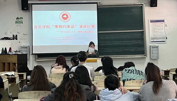 学习党的二十大精神、阅读书籍“充电”、投身专业实践、参加志愿服务……参赛选手依次上台分享寒假的学习生活、所见所得和实践感受,与大家进行思想交流。