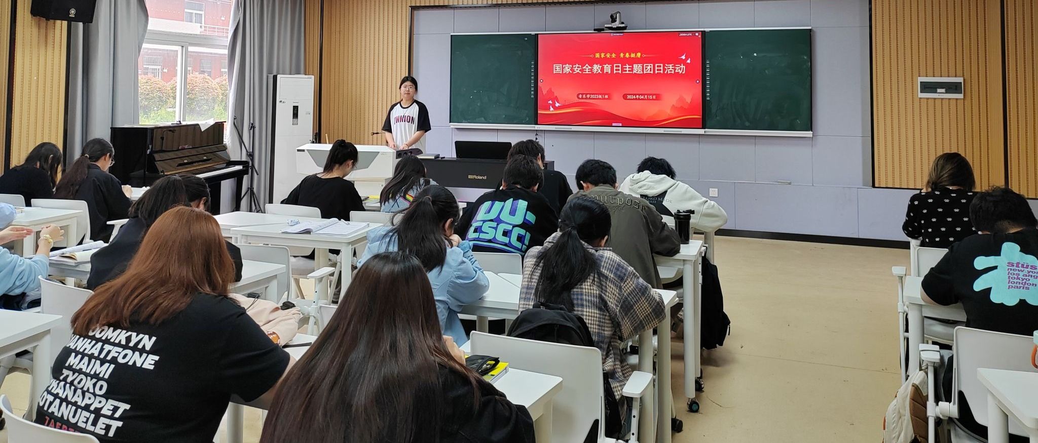 2024年4月15日,古天乐太阳集团城音乐学2023级1班开展“国家安全 青春挺膺”主题团日活动,党委副书记、辅导员肖之进,辅导员刘霜霜,全体同学参加活动。