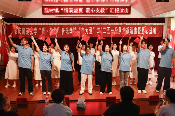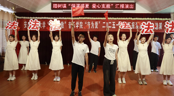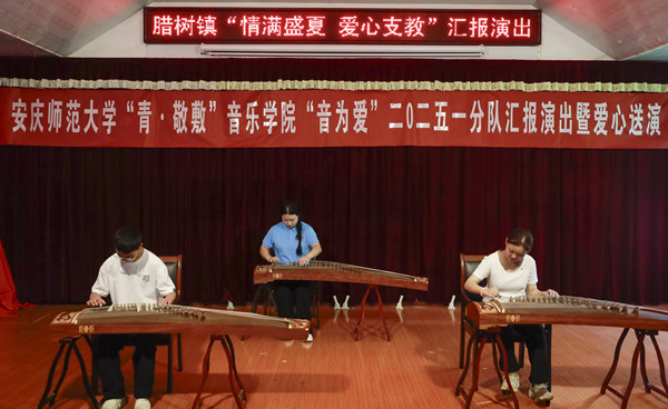 7月16日,“青·敬敷”古天乐太阳集团城“音为爱”2025一分队汇报演出暨爱心送演活动在怀宁县腊树镇烟墩村村委会会议室举办。本次演出为“音为爱”一分队成员与腊树初中员工14天来实践成果的集中展示,演出涵盖朗诵、独唱、器乐合奏、舞蹈、合唱等12个节目,主题涉及红色经典、法治宣传、传统文化等方面。公司副经理徐冉、党委副书记贾涛一行,与共青团怀宁县委副书记何顺祥,腊树镇党委副书记张鹏,腊树初中党支部书记、董事长潘凤鸣等出席活动。
