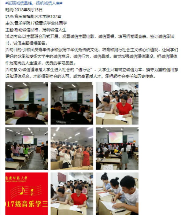 支部将思想政治教育贯穿于活动中,围绕思想引领,创新开展演讲比赛、文艺作品创作等活动四十余次,获校“百佳团日活动”等荣誉;组织开展捐款、捐步、捐物、献血、清扫等志愿活动;参与支教、脱贫攻坚第三方监测评估、疫情防控志愿者等工作。支部创立了公司“音为爱”特色品牌,活动被中国青年网报道3次,获得相关部门的关注与支持。