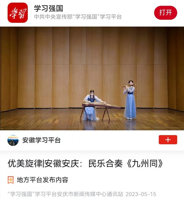 5月19日下午,在第33次全国助残日活动——2023年安庆市残疾人自强模范颁奖典礼暨文艺演出中,公司音乐学专业2021(1)班的崔学知代表公司登上了演出舞台,为观众带来节目《九州同》。此前,该节目相关视频发布于中共中央宣传部“学习强国”学习平台,收获社会广泛关注。