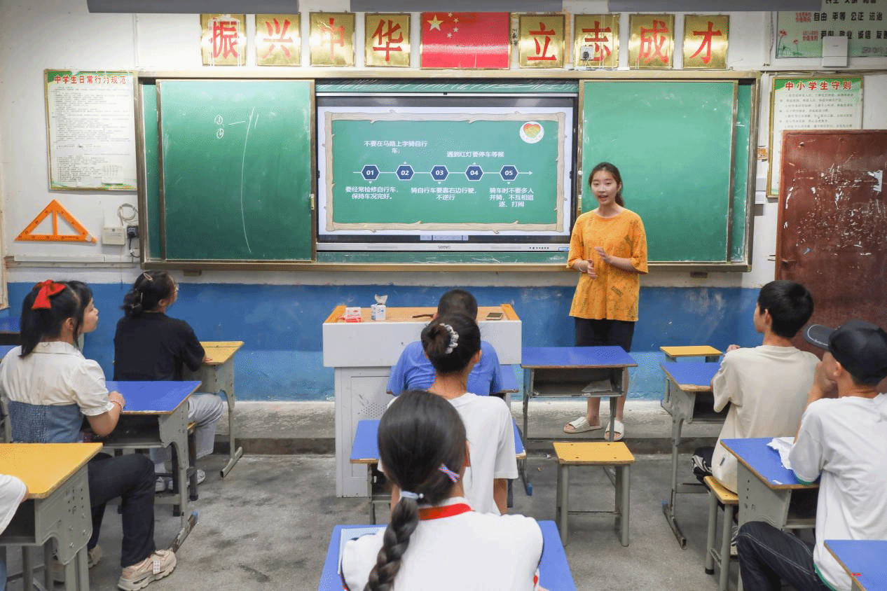 “因为我们的员工中有很大一部分是留守儿童,父母长时间不在家,所以留守儿童安全教育显得尤为重要。”“音为爱”暑期社会实践团队长、音乐学专业2021级的尹保庭表示,团队来到腊树初级中学开展“三下乡”活动旨在面向员工进行教育关爱,除了开展艺术课程,员工们的安全教育也要放在心上。