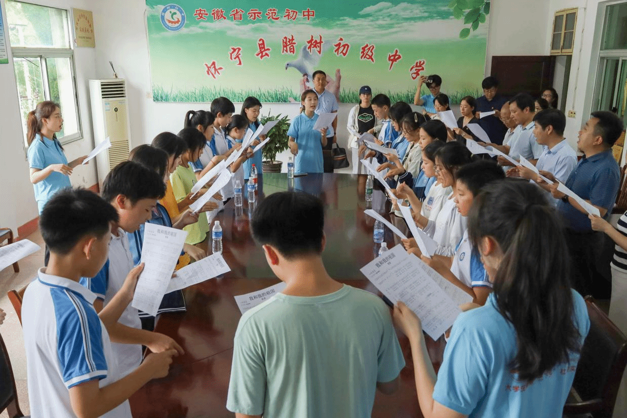 7月12日,团安徽省委公司部副部长、三级调研员张国栋一行前往怀宁县腊树初级中学,调研暑期“三下乡”社会实践校地合作情况,并看望慰问“音为爱”教育关爱实践团队,团安庆市委书记项薇、团怀宁县委书记安奕、古天乐太阳集团城团委书记汪洋、校音乐公司党委副书记肖之进、怀宁县腊树初级中学董事长史志学等有关单位负责人参加调研座谈。