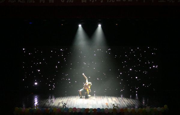 晚会现场座无虚席。开场的街舞团队今年5月份刚获得安庆市体育舞蹈锦标赛一等奖,以火爆的表演拉开了晚会序幕。公司民乐团、青春合唱团,用精湛的表演深情欢送毕业生。吉他弹唱《我好像在哪见过你》,对唱《向云端》,独唱《追光者》等,把观众带入美好的抒情意境。独唱《着魔》《火力全开》,音乐短剧《心脏》,用充满力量的歌声和投入的表演燃爆全场。毕业班同学带来了小提琴独奏、竹笛独奏、傣族舞、对唱、独唱等节目,饱含深情,诉说了对母校的无限留念。毕业生王辉为演出精心准备,邀请老师帮忙确认舞台灯光,提前反复踩点,最终呈现了一场生动的表演。“白给”乐队用在校期间的最后一场演出,为大学四年画上了圆满的句号。