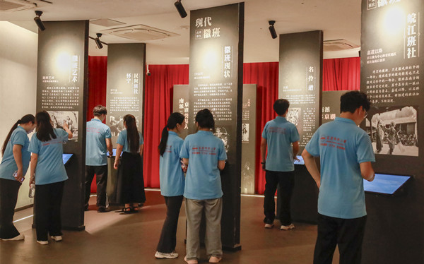 进入展馆,实践团队按照时间顺序,通过一件件展品了解历史:早期的戏班道具、不同时期的徽剧曲谱、历代艺人的演出剧照……队员们时而驻足细看文物细节,时而用手机拍摄资料,还不时相互提问交流,讨论徽剧唱腔与地方民歌的联系,分享各自对戏曲音乐的理解等。