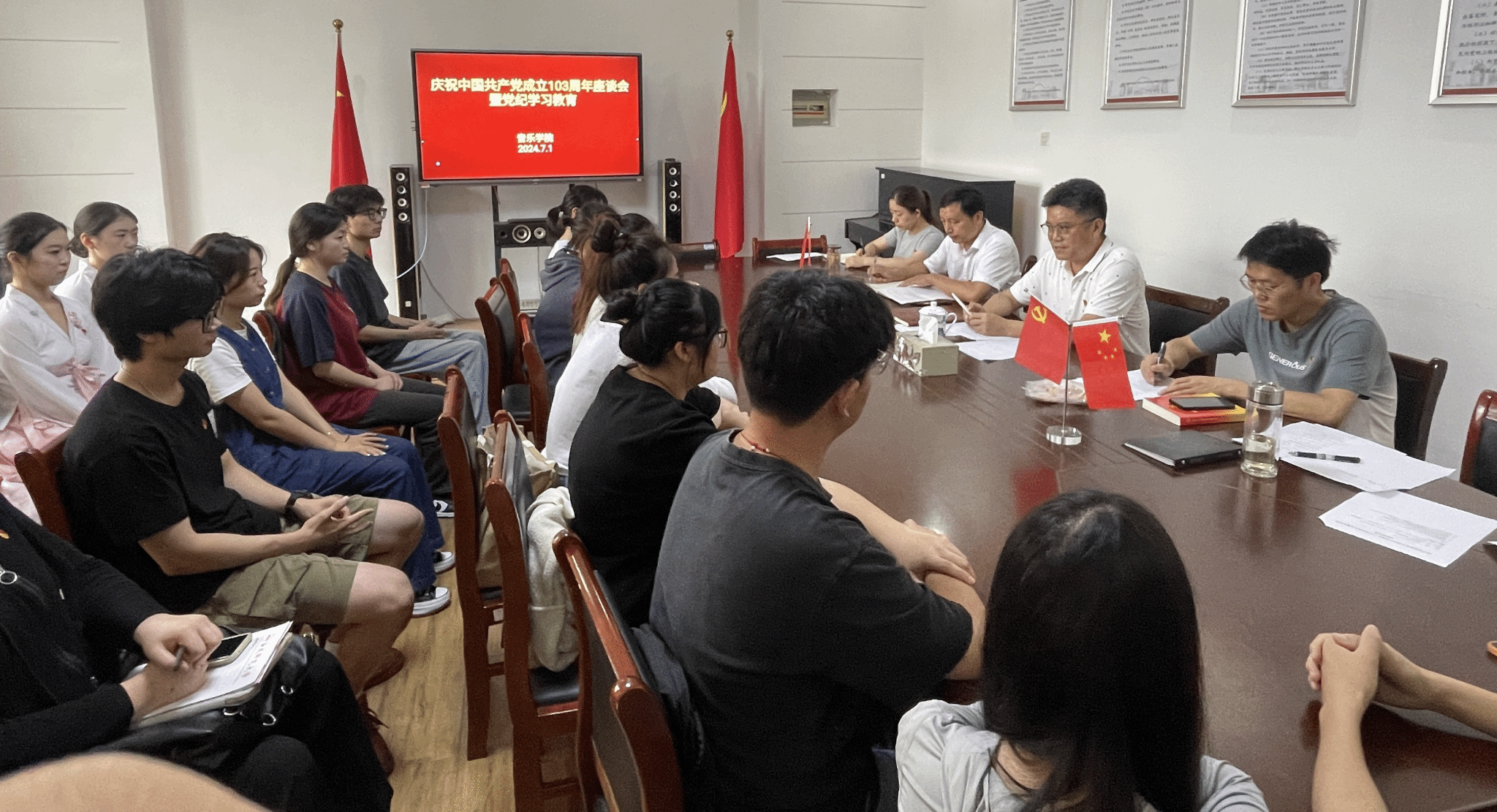 7月1日上午,公司在艺术楼一楼会议室开展主题党日活动,庆祝中国共产党成立103周年,开展党纪学习教育,公司党委书记张铭,党委副书记肖之进,部分教师代表,全体员工党员参加。