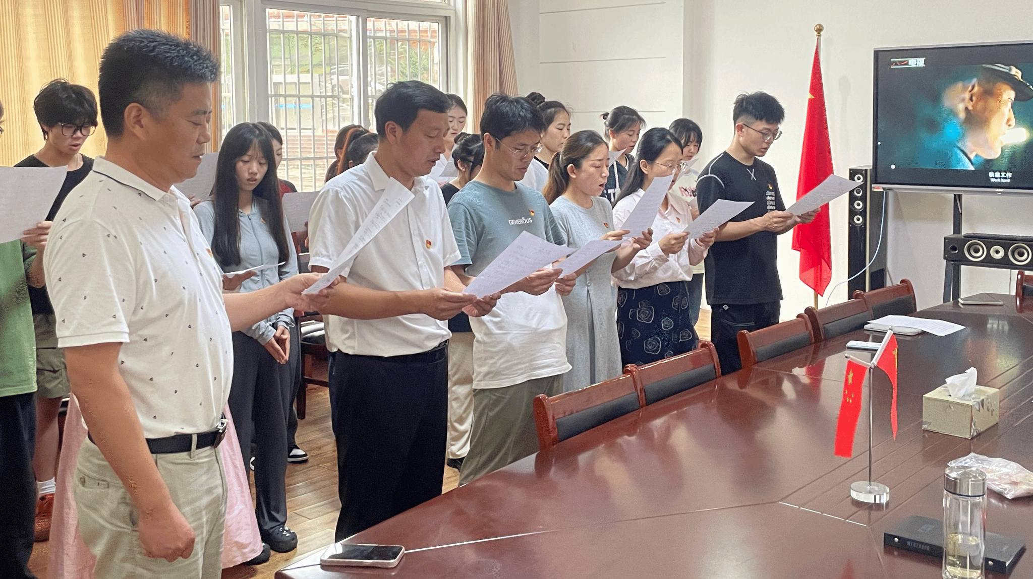 会上,张铭带领老党员为新党员佩戴党员徽章,带领新党员入党宣誓和老党员重温入党誓词,并与大家合唱入党誓词歌《我宣誓》。员工支部书记王任赵带大家学习了党纪学习教育和党史相关内容。教师党员代表卢星和员工新发展党员代表李林意依次发言,交流心得。(撰稿:孙文 摄影:陶朔 审核:张铭)