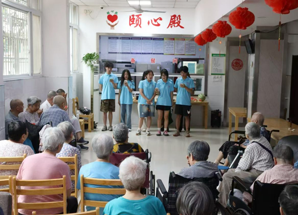 送达夏日清凉、陪伴老人聊天、开展音乐汇演……7月20日,实践队员相约安庆市颐心殿养老中心,用爱与关怀为老人带来“红色记忆,不老情怀”主题音乐汇演。