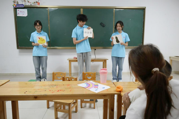 演示音乐教具、比划游戏动作、教授儿童歌曲……教室里,实践队员们化身“小老师”,承担起日常教学的任务。“这是我首次接触自闭症儿童这个群体,刚来到特教公司时,我担忧自己是否能胜任特教教师的角色。”实践队员古锐坦言,“在前期的观摩与学习中,我逐渐理解对自闭症儿童的教学特点和方法。这些小朋友有着自己的精神世界,只是不善于表达自己。”